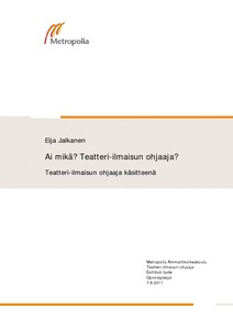 (Metropolia Ammattikorkeakoulu, 2011)Opinnäytetyö käsittelee teatteri-ilmaisun ohjaaja –käsitettä, sen määrittymistä ja alalle valmistuvien sekä alalla yöskentelevien suhtautumista käsitteeseen. Opinnäytetyössä kysyn, voiko käsitteen teatteri-ilmaisun ...