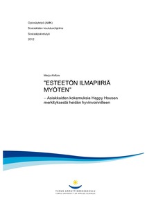 (Turun ammattikorkeakoulu, 2012)Tutkimuksellinen opinnäytetyö on tilaustyö Turun Seudun Vammaisjärjestöt TVJ ry:lle. Sen tarkoituksena oli selvittää Happy House -monitoimikeskuksen merkitystä asiakkaille ja heidän hyvinvoinnilleen. Tavoitteena oli tuottaa ... -