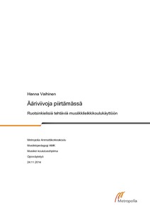 (Metropolia Ammattikorkeakoulu, 2014)Opinnäytetyöni käsittelee musiikkileikkikoulun opetusta ja oppilaille annettavia visuaalisia tehtäviä. Opinnäytetyöprosessini aikana tuotin 18 uutta ruotsinkielistä tehtävää oppilaitteni käyttöön ja perehdyin samalla ...