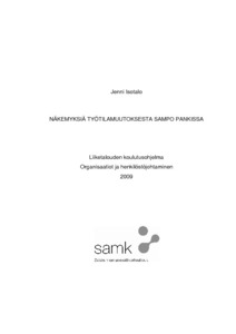 Isotalo, Jenni (Satakunnan ammattikorkeakoulu, 2009)Tämän opinnäytetyön aiheena oli tarkastella, miten työntekijä kokee uuden työympäristönsä. Tutkimuksen tavoitteena oli selvittää, miten työympäristön muutokset vaikuttavat henkilöstöön. Kohdeyrityksenä oli Sampo Pankin ... -