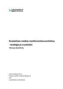 Opinnäytetyön tarkoituksena oli selvittää, millä tavalla Ylämaan Graniitti tavoittaa kohderyhmänsä sosiaalisessa mediassa ja millä sisällöllä vaikutetaan sosiaalisessa mediassa kohderyhmään. Opinnäytetyö on toiminnallinen ...