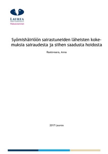 Tämän opinnäytetyön tarkoituksena oli selvittää syömishäiriöön sairastuneiden läheisten kokemuksia sairaudesta ja siihen saadusta hoidosta. Opinnäytetyössä käytettiin kvalitatiivista tutkimusotetta. Opinnäytetyön tavoitteena oli tuottaa tietoa syömishäiriöiden hoitomenetelmien arvioimiseksi ja kehittämiseksi. Lisäksi opinnäytetyön tavoitteena oli tuottaa tietoa syömishäiriöön sairastuneille ja heidän läheisilleen sekä syömishäiriöiden hoitoon tai toipumisprosessiin osallistuville henkilöille.
