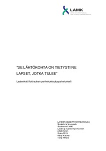 (2019)Tämän tutkimuksellisen kehittämishankkeen kohdeorganisaationa oli Lastenkoti Kotirauha Heinolassa. Kehittämishankkeen tavoitteena oli luoda Kotirauhaan perhekuntoutuspalvelumalli ja tarkoituksena oli kehittää siellä tehtävää ... -