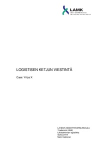 (2019)Opinnäytetyön tarkoitus on logistisen ketjun viestinnän kehittäminen päivittäistavarakaupassa kohdeyrityksessä. Hyvällä viestinnällä voidaan parantaa asiakassuhteita ja tarjota vastuullista ja laadukasta palvelua sidosryhmille. ... -