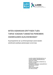 Miten asiakkaan erityisen tuen tarve voidaan tunnistaa paremmin asiakkuuden alkuvaiheessa? : Kysymyspatteristo työ- ja elinkeinopalvelujen asiantuntijoiden työvälineenä asiakkaan palvelutarpeen arvioinnissa