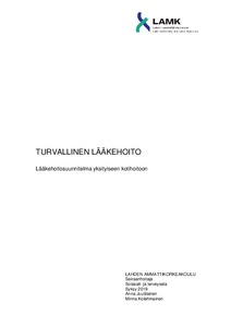 (2019)Opinnäytetyönä tehtiin lääkehoitosuunnitelma Stella Oy:lle, joka on valtakunnallinen yksityinen koti- ja hoivapalveluiden tuottaja Suomessa. Lääkehoitosuunnitelma tehtiin Lahden yksikköön, mutta sitä käytetään myös ... -