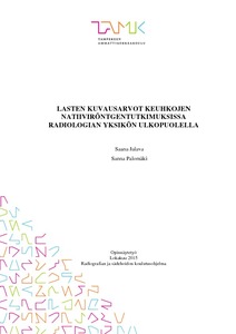 Opinnäytetyön tavoitteena oli tuottaa tietoa yhteistyökumppanille röntgenhoitajien kuvausarvo-osaamisesta. Opinnäytetyön tarkoituksena oli selvittää esimerkkipotilaiden avulla, mitä kuvausarvoja röntgenhoitajat valitsevat lasten keuhkojen natiiviröntgentutkimuksessa, joka suoritetaan radiologian yksikön ulkopuolella. Opinnäytetyön tutkimusongelmana oli, mitä kuvausarvoja käytetään lasten keuhkojen AP-projektiossa kuvatessa radiologian yksikön ulkopuolella? Opinnäytetyö toteutettiin kvantitatiivista eli määrällistä tutkimusmenetelmää käyttäen. Opinnäytetyön yhteistyökumppanina toimi Pirkanmaan sairaanhoitopiirin Kuvantamiskeskus- ja apteekkiliikelaitos. Tutkimusaineisto koostui 30 röntgenhoitajan valitsemista kuvausarvoista viiden eri-ikäisen esimerkkipotilaan keuhkokuviin, jotka kuvattiin radiologian yksikön ulkopuolella. Tutkimusaineisto analysoitiin Excel-ohjelman ja Tixel 10-taulukkolaskentaohjelman avulla. Tutkimusaineistosta saatuja vastauksia analysoitiin sekä verrattiin kuvausarvoihin, joilla esimerkkipotilaat oli todellisuudessa radiologian yksikön ulkopuolella kuvattu.