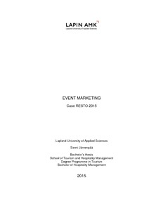 Opinnäytetyön tarkoituksena oli tutkia tapahtumamarkkinointia RESTO 2015- tietotaitokilpailussa. Opinnäytetyössä tutkittiin tapahtumamarkkinoinnin johtamista, suunnittelua, toimintaa ja toteutusta RESTO 2015 -tietotaitokilpailussa. Opinnäytetyön kirjoittaja työskenteli tapahtumassa markkinointiharjoittelijana.