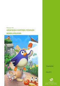 Opinnäytetyössä on keskitytty mobiilipeligrafiikkaan ja sen keskeisiin tehtäviin uutta peliä kehitettäessä. Näitä ovat visuaalisen tyylin valinta, hahmosuunnittelu, animointi, käyttöliittymäsuunnittelu sekä tuotteen markkinointi. Henkilökohtaisia tavoitteita työssä ovat olleet vektorigrafiikan opiskelu, julkaistavan tuotteen kehitys sekä henkilökohtaisen portfolion rakentaminen. Opinnäytetyön teoriaosuudessa on tutkittu tuotteen kehityksen vaiheita. Käytännön osuudessa näitä vaiheita on käytetty Hopping Penguin mobiilipelin grafiikan kehitykseen. Vektorigrafiikan hyödyt tulivat hyvin esille peliä kehitettäessä. Varsinkin tuotetun grafiikan siisteys sekä helppo optimoitavuus ja muokattavuus ovat isoja etuja. Peli saatiin kehitettyä onnistuneesti, ja kehityksen aikana saatiin tuotettua paljon grafiikkaa. Tätä grafiikkaa voidaan käyttää portfolion rakentamiseen.