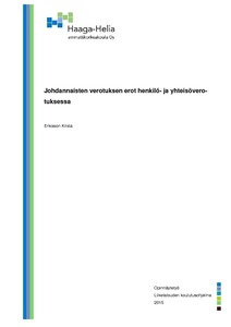 Opinnäytetyön tavoitteena on selvittää, onko johdannaisten verotuksessa eroa henkilö- ja yhteisöverotuksessa. Tutkimuksessa selvitetään myös, miten johdannaisista syntyneiden luovutustappioiden vähennyskelpoisuutta ja preemioita käsitellään TVL:ssa ja EVL:ssa. Näiden lisäksi tutkitaan, onko yksityishenkilön kannattavampaa sijoittaa johdannaisiin yhtiömuotoisena, ja onko olemassa tiettyä sijoitusomaisuuden määrää, jonka ylityttyä johdannaisiin sijoittaminen on kannattavampaa yhtiömuotoisena kuin yksityishenkilönä. Tutkimus on rajattu käsittelemään kannattavuutta nimenomaan verotuksellisesta näkökulmasta. Tutkimuksesta on rajattu pois valuuttakurssisuojautumisessa käytettävät johdannaiset.