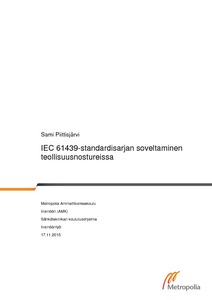 Tämän opinnäytetyön tarkoitus oli kirjoittaa yksiselitteinen ohje Konecranesin käyttöön IEC 61439-standardisarjan soveltamisesta raskaissa teollisuusnostureissa. Opinnäytetyö jakautui kahteen osaan. Ensimmäisessä osassa standardisarjan ja sen velvoittavien standardien vaatimuksia tutkittiin ja tehdyt löydökset kirjattiin suoraan opinnäytetyön raporttiosuuteen. Toisen osan tarkoituksena oli kirjoittaa varsinainen suunnitteluohje Konecranesin sähkösuunnittelijoiden käyttöön. Suunnitteluohjeen on tarkoitus toimia myös jatkossa myyntiorganisaation tukidokumenttina.