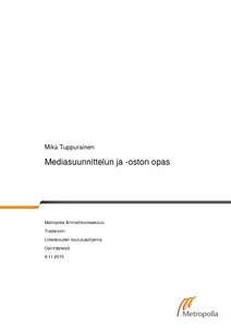 Mediasuunnittelu ja -ostaminen ovat mainostajan toimintaa, joka tähtää mainostajan kohderyhmän tavoittamiseen mahdollisimman tehokkaasti ottaen huomioon viestinnälliset ja kustannukselliset tavoitteet. Tämän opinnäytetyön tarkoituksena oli luoda mainostajalle opas mediasuunnittelun ja -ostamisen tekemiseen. Työn tarkoituksena oli antaa mainostajalle työkaluja jokapäiväiseen mediasuunnittelun ja -ostamisen tekemiseen. Työn tarkoituksena oli myös antaa mainostajalle työkaluja keskusteluun medioiden ja alalla toimivien mainonnan suunnitteluun tai mediasuunnitteluun keskittyvien yritysten kanssa.