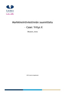 Markkinointiviestinnän suunnittelu : - Case yritys X
