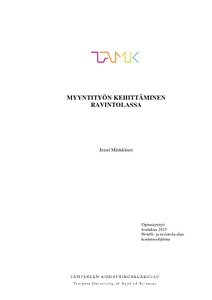 Tässä opinnäytetyössä selvitettiin myyntityön kehittämisen tarvetta ja mahdollisuuksia ravintola-alalla toimivassa yhteistyöyrityksessä, saadun toimeksiannon mukaisesti. Työssä selvitettiin yrityksen myyntiosaamisen ja -johtamisen nykyistä tilaa, ja pyrittiin löytämään keinoja niiden kehittämiseksi. Lisämyynti nousee keskeiseksi käsitteeksi työn kannalta. Tutkimusmenetelmänä käytettiin aiheeseen liittyvän teoriatiedon tukena teemahaastattelua. Haastateltaviksi tähän laadulliseen tutkimukseen valikoituivat kaksi kehitettävissä toimipaikoissa työskentelevää henkilöä, yksi toimipisteen esimiehistä ja yksi yrityksen johdon edustaja.