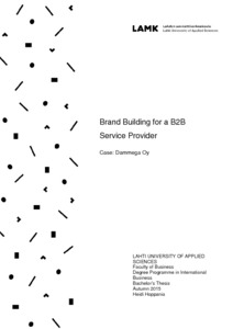Brändäyksestä on tulossa uusi työkalu erillaistua B2B markkinoilla. Lisääntynyt kilpailu teollisuuden alalla pakottaa yrityksiä löytämään uusia keinoja pysyä mukana pelissä. Juurikin sitä brändäys voi tarjota, syvempien ja merkityksellisempien asiakssuhteiden saavuttamista, joiden avulla voidaan saavuttaa korkeammat voittomarginaalit. Dammega Oy on yksi niistä yrityksistä jotka etsivät kilpailukyvyn kasvattamista kehittämällä vahvan brändin. Tutkimuksessa keskitytään rakentamaan Dammegan brändiä, yrityksen tavoitteiden mukaisesti.