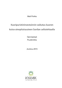 Opinnäytetyössä selvitettiin kuoripuristimien tehokkuutta ja uuden puristimen vaikutusta kuoren kuiva-ainepitoisuuteen Stora Enso Oyj:n Sunilan tehtaalla. Suurin vaikutus oli kuoren puristuskapasiteetin nostolla. Uuden ja vanhan puristimen rakenteessa ei ole suurta eroa siksi kuiva-ainepitoisuusmittausten tulokset eri puristimilta ovat samankaltaisia.