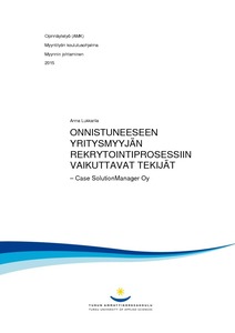 Opinnäytetyössä tutkitaan yritysmyyntiä tekevien yritysten rekrytointiprosessia ja rekrytointiprosessiin kuuluvia työhaastatteluita. Opinnäytetyön tutkimuksen avulla selvitetään, minkälaisten rekrytointikäytäntöjen on koettu vaikuttavan yritysmyyjän onnistuneeseen rekrytointiin ja miten tärkeänä rekrytointiprosessin haastatteluvaihetta pidetään. Tutkimuksen tavoitteena on löytää hyväksi havaittuja rekrytointikäytäntöjä, joiden avulla toimeksiantajayritys voi hyötyä tulevaisuuden rekrytointitilanteissa ja hyödyntää hyväksi havaittuja rekrytointikäytäntöjä omassa rekrytointiprosessissaan. Tutkimuksen avulla selvitetään myös, miten tärkeänä rekrytointiprosessin osana haastatteluvaihetta voidaan pitää. Opinnäytetyön toimeksiantajana toimii SolutionManager Oy.