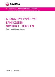 Tämän opinnäytetyön tarkoituksena oli tutkia asiakkaiden tyytyväisyyttä sähköistä nimikirjoitusta kohtaan Kuopion Handelsbankenin konttorilla. Tavoitteena oli saada tietää, kuinka tyytyväisiä asiakkaat ovat sähköiseen nimikirjoitukseen kokonaisuudessaan, siihen käytettävän allekirjoitusalustan toimintaan ja allekirjoituksen kehitykseen tavallisesta allekirjoituksesta sähköiseen nimikirjoitukseen.