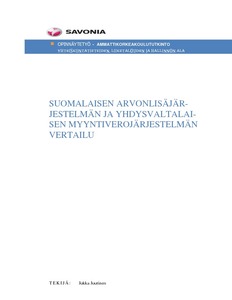 Tässä opinnäytetyössä tarkastellaan Suomessa käytettävää arvonlisäverojärjestelmää ja Pohjois-Amerikan Yhdysvalloissa käytettävää myyntiverojärjestelmää. Ensin kuvataan suomalaisen järjestelmän historia ja kehitys alkaen alkuperäisestä liikevaihtoverojärjestelmästä päätyen nykyisin käytettävään arvonlisäverojärjestelmään.