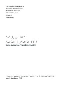 Opinnäytetyössä tarkastellaan suomalaista muoti- ja vaatetusalaa. Huoli alan yleisestä arvostuksesta, työpaikoista ja tulevaisuudesta toimii keskeisenä teemana analyysille ja yhteistoiminnallisille käytännön kokeiluille.