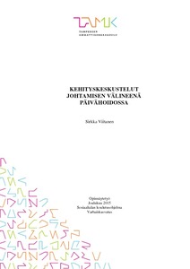 Tässä opinnäytetyössä tarkasteltiin kehityskeskusteluja johtamisen välineenä päivähoidossa. Opinnäytetyössä selvitettiin, toteutuvatko kehityskeskusteluille annetut tavoitteet ja kokevatko johtajat kehityskeskustelun johtamisensa välineeksi. Samalla koottiin esille nousseita kehitystarpeita ja ehdotuksia.