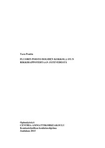 Opinnäytetyön tavoitteena oli tutkia sopivaa menetelmää fluorin poistamiseksi Boliden Kokkolan rikkihappotehtaan jätevedestä. Kesäkuusta 2015 alkaen rikkihappotehtaan jätevedet ohjattiin matalasulfidoinnin kautta puhdistamon vesienkäsittelyyn. Kaikki fluori, joka vanhassa prosessissa poistui happotehtaan vesien mukana mereen, tulee nyt puhdistamolle.