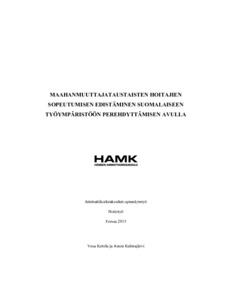 MAAHANMUUTTAJATAUSTAISTEN HOITAJIEN SOPEUTUMISEN EDISTÄMINEN SUOMALAISEEN TYÖYMPÄRISTÖÖN PEREHDYTTÄMISEN AVULLA