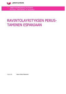 Tämän opinnäytetyön tarkoituksena oli laatia opas ravintolan perustamiseen liittyen Espanjassa. Opas on tarkoitet-tu suomalaisille henkilöille, jotka ovat kiinnostuneita aloittamaan ravintola-alan yritystoiminnan Espanjassa. Opas on kuitenkin yleisluontoinen ja sopii myös muiden alojen yrittäjien käyttöön.