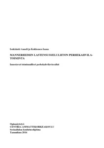 Toiminnallinen opinnäytetyö tehtiin yhteistyössä Mannerheimin Lastensuojeluliiton Pohjois-Pohjanmaan piirin kanssa. Innostavat toiminnalliset perhekahvilavierailut toteutettiin viidessä eri Mannerheimin Lastensuojeluliiton perhekahvilassa Pohjois-Pohjanmaan alueella syksyllä 2015. Tarve aiheelle nousi vuonna 2014 tehdystä valtakunnallisesta perhekahvilakyselystä.