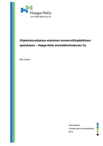 Työn tavoitteena oli löytää toimeksiantajan tarpeisiin sopivia ohjelmistoratkaisuja ja vertailun perusteella esittää niistä parhainten soveltuvia toimeksiantajalle. Tutkimuskohteena oli konsernitilinpäätösohjelmistot joita voitaisiin käyttää opetuksen tukena. Työ oli toimeksianto Haaga-Helia ammattikorkeakoululta, toimeksiantaja esitellään työn johdannossa.