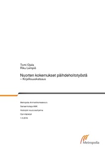 Opinnäytetyön tarkoitus oli kuvata nuorten kokemuksia päihdehoitotyöstä. Päihdehoitotyön tuloksellisuuteen vaikuttaa nuoren yksilöllinen kohtaaminen, päihdehoidon monipuolinen toteuttaminen, sekä perheen ja sosiaalisten suhteiden tukeminen. Tavoitteena oli luoda opinnäytetyö, jonka tietoa ja tuloksia hyödyntäen sekä terveydenhoitoalan opiskelijat, että -ammattilaiset voivat syventää tietoaan nuorten päihdehoitotyöhön liittyen, sekä kehittää nuorten päihdehoitotyötä asiakaslähtöisemmäksi ja nuoren toiveita sekä -tuntemuksia huomioi-vammaksi. Opinnäytetyön tilaajana toimi Metropolia Ammattikorkeakoulu