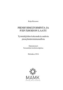 Opinnäytetyön tavoitteena oli tutkia yhden päiväkodin työntekijöiden kokemuksia pienryhmätoimintamallista, joka on otettu käyttöön päiväkodissa syksyllä 2012. Työn tarkoituksena oli selvittää työntekijöiden näkemyksiä uuden toimintamallin vaikutuksista Hujalan-Huttusen (1995) päivähoidon laadunarviointimalliin kuuluvien päivähoidon laatuun välillisesti ohjaavien tekijöiden ja prosessitekijöiden näkökulmasta.