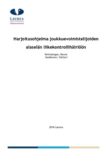 Tämän opinnäytetyön aiheena oli alaselän liikekontrollihäiriön yhteys alaselkävaivoihin joukkuevoimistelijoilla. Opinnäytetyön tavoitteena oli tuottaa harjoitusohjelma, joka perustuu Sport Club Vantaan ja Tapanilan Erän Elite-joukkueiden liikekontrollitesteihin Joukkueissa on 21 11 - 16-vuotiasta tyttöä, jotka harjoittelevat kilpatasolla. Kohderyhmällä oli aikaisemmin esiintynyt alaselän vaivoja. Opinnäytetyön tarkoituksena oli selvittää liikekontrollihäiriön yhteyttä alaselkävaivoihin ja lisätä joukkueiden valmentajien, voimistelijoiden sekä voimistelijoiden vanhempien tietoisuutta alaselän vaivoista, niiden ennaltaehkäisystä ja hoidosta. Harjoitusohjelman tarkoituksena oli kehittää joukkueen voimistelijoiden keskivartalon hallintaa ja ennaltaehkäistä alaselän vammojen syntyä.