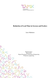 Opinnäytetyön ideana oli todentaa Sandvik Mining and Constructionin, Hollolan toimipisteen toimitusajan tilanne. Hollolassa vastataan kaikista Sandvikilla valmistettavien syöttimien ja seulojen tilauksista. Opinnäytetyön ideana oli tutkia millainen toimitusajan tilanne on tällä hetkellä, mitä ongelmia siihen liittyy, missä on onnistuttu tähän asti ja mitä voidaan parantaa. Tutkittavien asioiden myötä pyrittiin luomaan mahdollisia korjauskeinoja toimitusajan parantamiseksi.