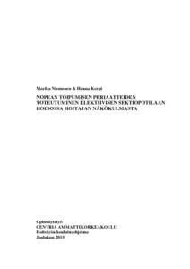 Opinnäytetyön tarkoituksena oli selvittää hoitajien kokemuksia nopean toipumisen periaatteiden toteutumisesta sektiopotilaan hoidossa Keski- Pohjanmaan keskussairaalan naistenklinikalla. Tavoitteena oli, että Keski-Pohjanmaan keskussairaalan naistenklinikka voisi tulosten pohjalta kehittää toimintaansa nopean toipumisen periaatteiden toteutumisessa sektiopotilaan hoidossa.