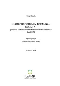 Opinnäytetyön tavoitteena oli arvioida ja kehittää Kaakkois-Suomen yhteistyöfoorumi nuorten palveluista – Nuorisofoorumin verkoston toimintaa muuttuneessa toimintaympäristössä ja tunnistaa ratkaisuja verkostoyhteistyön toiminnan parantamiseksi. Kaakkois-Suomen yhteistyöfoorumi nuorten palveluista – Nuorisofoorumi on Elinkeinoelämän keskusliiton (EK) ja Suomen Ammattiliittojen Keskusjärjestön (SAK) ja