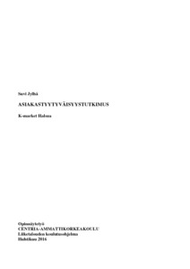 Tämän opinnäytetyön tavoitteena oli K-market Halsuan asiakastyytyväisyyden selvittäminen. Tarkoituksena oli selvittää asiakkaiden tyytyväisyyttä kaupan asiakaspalveluun, palveluympäristöön ja tuotevalikoimaan. Tutkimustulosten perusteella pyrittiin antamaan K-market Halsualle kehittämisideoita palvelun laadun ja asiakastyytyväisyyden kehittämiseksi.