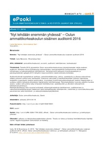 ”Nyt tehdään enemmän yhdessä” – Oulun ammattikorkeakoulun sisäinen auditointi 2016