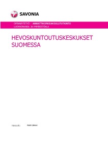 Hevoskuntoutuskeskukset ovat yrityksiä, jotka tarjoavat hevosten kuntoutus- ja hyvinvointipalveluita. Suomeen ensimmäinen hevoskuntoutuskeskus perustettiin vuonna 2010, joten ala on vielä varsin uusi Suomessa. Tämä opinnäytetyö on selvitystyö Suomessa toimivista hevoskuntoutuskeskuksista. Työssä selvitetään yritysten määrää, sijaintia ja toimintaperiaatteita. Opinnäytetyössä perehdytään hevoskuntoutuskeskusten tarjoamiin palveluihin ja siihen on koottu tietoa tarjottavista hoitomuodoista. Lisäksi työhön koottiin tietoa hevoskuntoutusyrittäjien kokemuksesta ja koulutuksesta, sekä kartoitettiin hevoskuntoutuskeskusten asemaa ulkomailla.