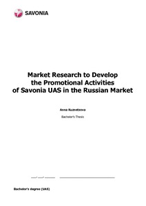 The primary purpose of this thesis was to conduct marketing research among Russian students at Savonia University of Applied Sciences (subsequently referred to as Savonia UAS) and, by analysis of the research findings, to postulate ways to develop the future promotional activities of Savonia UAS in the Russian market.