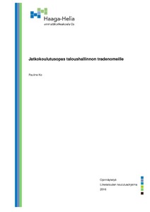 Tämä opinnäytetyö toteutettiin toiminnallisena tutkimuksena, jonka lopputuloksena syntyi jatkokoulutusopas. Toiminnallisen työn toimeksiantajana on Haaga-Helia:n opiskelijayhdis-tys Helga. Opas on laadittu siten, että opiskelijayhdistys Helga voi jakaa opasta sivuillaan, jolloin monet tradenomiopiskelijat hyötyisivät oppaan sisällöstä.