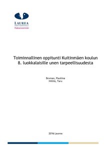 Opinnäytetyö toteutettiin osana Kuitinmäki-hanketta, joka on Laurea-ammattikorkeakoulun ja Kuitinmäen koulun yhteinen terveyden edistämisen hanke. Työn tarkoituksena oli toteuttaa Kuitinmäen koulun 8. luokkalaisille toiminnallinen oppitunti, jossa käsitellään unen merkitystä ja univajeen vaikutuksia sekä unenlaadun parantamista. Tavoitteena oli antaa oppilaille uusia välineitä oman unen parantamiseksi ja saada heidät huomaamaan mahdollisen univajeen vaikutukset omassa kehossaan. Opinnäytetyöllä haluttiin kasvattaa nuorten tietoisuutta unen merkityksestä ja saada heidät pohtimaan omia nukkumistottumuksiaan. Tekijöiden omana tavoitteena oli kehittyä nuorten ryhmänohjaajina. Aihe pohjautuu Kuitinmäen koululle vuosina 2012 ja 2013 tehtyihin nukkumistottumuksia tutkiviin opinnäytetöihin.