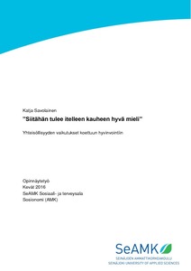 Tämä opinnäytetyö on toteutettu yhteistyössä Setlementtiasumisoikeus Oy:n kanssa. Heidän toiminta-ajatuksenaan on hyvin suunniteltujen, rauhallisten ja kohtuuhintaisten asumisoikeusasuntoja tuottamisen lisäksi asuinyhteisöjen kehittäminen. Yhteisöllisen asuinympäristön kehittämiseksi jokaisessa taloyhtiössä työskentelee yhteisökoordinaattori. Opinnäytetyön tarkoituksena on selvittää, onko yhteisöllisyydellä vaikutuksia koettuun hyvinvointiin. Tämän ohessa tarkoituksena on selvittää asukkaiden kokemuksia asuinympäristön yhteisöllisyydestä sekä millaisia vaikutuksia taloyhtiössä työskentelevällä yhteisökoordinaattorilla on yhteisöllisyyden rakentumiseen ja ylläpitämiseen.