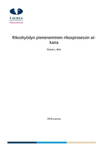 Tämän opinnäytetyön tavoitteena oli selvittää, miten rikoshyöty muuntuu rikosprosessissa. Aiheesta kirjoitettujen aikaisempien tutkimusten perusteella on esitetty toteamuksia, että rikoshyöty kuihtuu kasaan rikosprosessin edetessä. Työssä pyrittiin selvittämään pienellä otannalla, pieneneekö rikoshyöty rikosprosessin edetessä ja mikäli pienenee, miksi ja kuinka paljon euromääräisesti. Lisäksi tarkoituksena oli selvittää, liittykö mahdolliseen rikoshyödyn pienenemiseen tapauskohtaisia samankaltaisuuksia. Rikosprosessilla työssä tarkoitetaan esitutkintaa, syyteharkintaa ja tuomioistuinkäsittelyä.