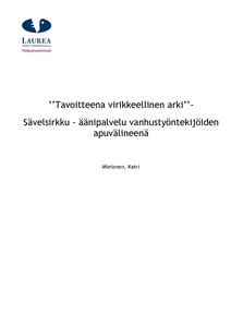 Tutkimukseni käsittelee vanhustyötä ja siinä avuksi käytettyä Sävelsirkku-äänipalvelua. Tavoitteenani on tutkia miten viriketoiminta nähdään osaksi työtä, työntekijöiden näkemyksiä ja kokemuksia Sävelsirkku- äänipalvelun käytöstä asiakkaiden toimintakyvyn tukemisessa sekä Sävelsirkku- äänipalvelun vaikuttavuutta vanhustyöntekijöiden työhön. Sävelsirkku –äänipalvelu on kehitetty yhdessä Vanhustyön keskusliiton kanssa Tekesin iWell hankkeessa. Nykyään Sävelsirkku- äänipalvelun omistaa Sentina Oy. Sävelsirkku-äänipalvelu on digitaalinen palvelu ikääntyneiden toimintakyvyn tukemiseen. Muistin toiminnan parantamiseksi liitetään yhteen äänen ja musiikin vaikutus ikääntyneille tuttuun yhdessä kuuntelemisen toimintatapaan.