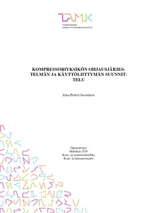 Opinnäytetyö tehtiin osana Tampereen Konepajat Oy:n tuotekehitysprojektia, jonka tarkoituksena oli kehittää suurpainekompressoriyksikkö rakennusteollisuuden tarpeisiin. Työn tavoitteena oli suunnitella laitteelle ohjausjärjestelmä sekä käyttöliittymä, jonka avulla ruuvikompressoria, dieselmoottoria sekä muita käytettyjä komponentteja saadaan ohjattua ja seurattua halutulla tavalla. Työssä keskityttiin logiikkaohjelmointiin automaatioväylän laitteille.