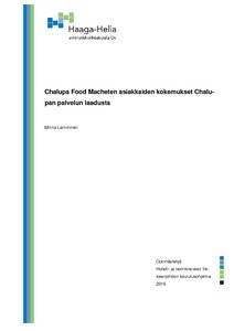 Chalupa Food Machete on vuonna 2015 avattu meksikolaista pikaruokaa tarjoava ketju, jolla tutkimusta toteutettaessa oli kolme ravintolaa pääkaupunkiseudulla. Chalupalle oli syksyllä 2015 tehty Mystery shopping, jonka tulosten perusteella yritys teki liiketoimintaideaansa selkeyttäviä muutoksia. Tämän tutkimuksellisen kehittämistyön tarkoituksena oli saada selville, millaisena Chalupa Food Macheten asiakkaat kokevat Chalupan tarjoaman palvelun laadun muutosten jälkeen, mikä on Chalupan palvelulupaus ja kohtaavatko nämä kaksi toisensa. Lisäksi selvitettiin kuinka Chalupa johtaa palvelun laatua. Tutkimus toteutettiin seitsemänä Mystery shopping-asiakaskäyntinä Kalliossa, Punavuoressa ja Kauniaisissa 23.3 - 7.4.2016. Tutkimuksen lähtökohta selvitettiin haastattelemalla Chalupan luovaa johtajaa.