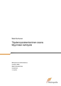 Tämä työ tehtiin Vantaan kaupungille pohjustamaan Myyrmäen kaupunginosan täydennysrakentamisen suunnittelua. Tavoite oli osoittaa Myyrmäen potentiaali. Johtopäätökset pohjautuvat laajaan lähdeaineistoon, asiantuntijoiden kanssa työskentelyyn sekä tekijän paikallistuntemukseen.