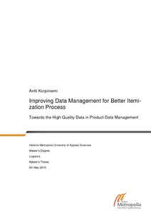 This Thesis focuses on improving data management for better itemization processes in the case company. Focus of the research is to identify and solve the root causes behind the problem why confirmed information in the product data management is not systematically received. This problem affects the processes where items are created and maintained and where there is a critical need for complete and high quality information.