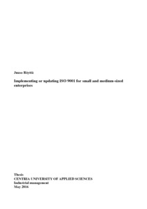 The objective of my thesis is find out what the small and medium-sized companies need to do to get certified for the new ISO 9001:2015 standard. To find out this information, I used the research method to find out what ISO 9001 is and the requirements of ISO 9001:2015. I opened up the requirements by simplifying the language and coming up with examples to how to do it. Then I looked two integrated management systems. The IMS and BSM and how they help to build a quality management system.